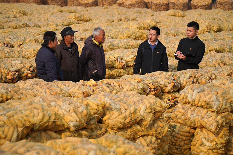 2020年12月10日,河北省巨鹿縣紀委監委工作人員(右一和右二)在巨鹿縣西郭城鎮柳洼村向村民了解扶貧政策落實(shí)情況。新華社記者 牟宇 攝