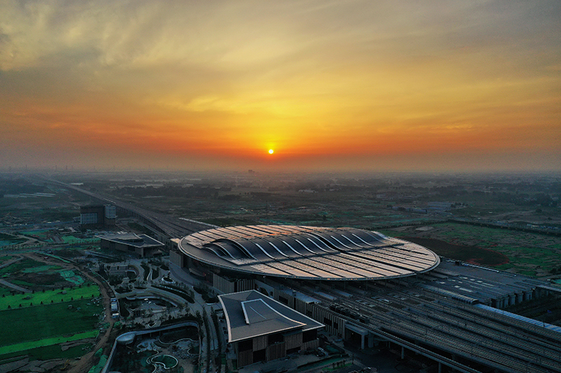 這是京雄城際鐵路雄安站(7月1日攝,無(wú)人機照片)。新華社記者 牟宇 攝