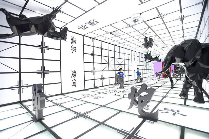 2019年9月21日,小朋友在湖南省長(cháng)沙市“字在其中”漢字國潮藝術(shù)展上參觀(guān)。新華社記者 陳澤國 攝
