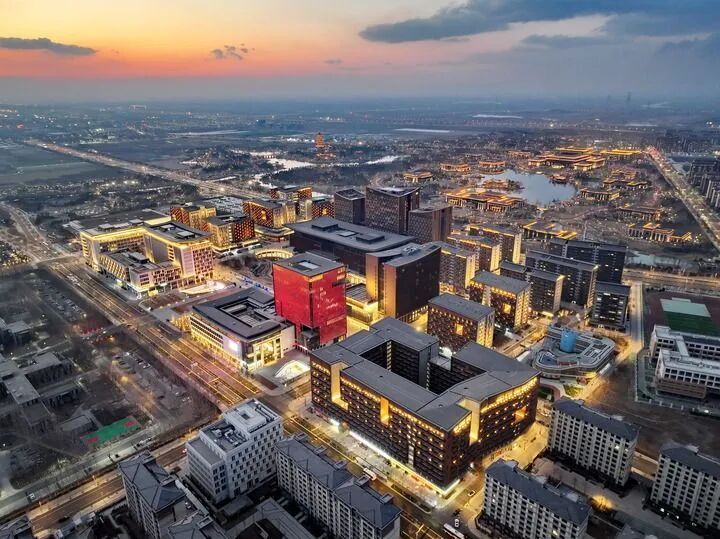 雄安商務(wù)服務(wù)中心夜景(2025年3月15日攝,無(wú)人機照片)。新華社記者 牟宇 攝